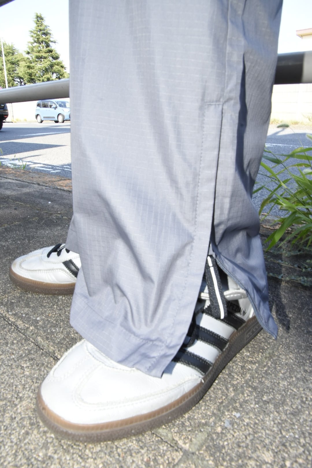 裾にはジップ(スリット)付きで、シューズに合わせてシルエット調整が可能です。ボリュームのあるスニーカーとも相性◎。