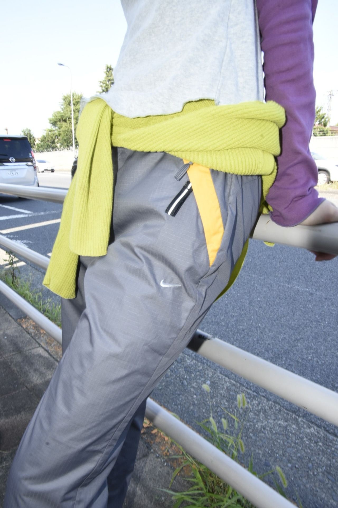 軽量でシャリ感のあるリップストップ生地に、イエローの切替デザインが映えるテックな一本です。