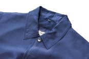 素材特有の光沢感が特徴でミニマムなデザインがスモーキーなブルーを引き立たせる1着。