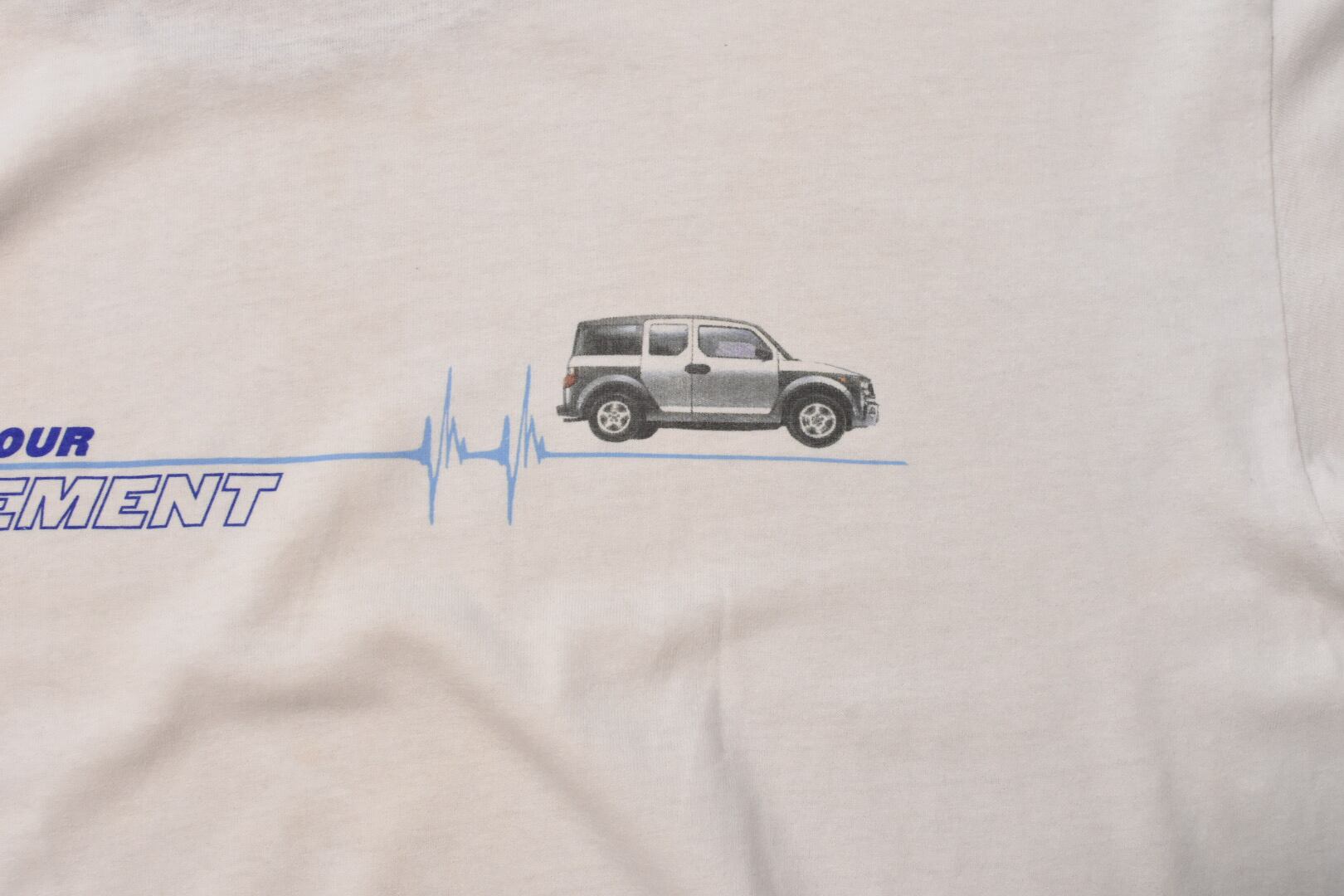 ボディの配色や角ばったSUVのプリントが今の気分にハマる1着。