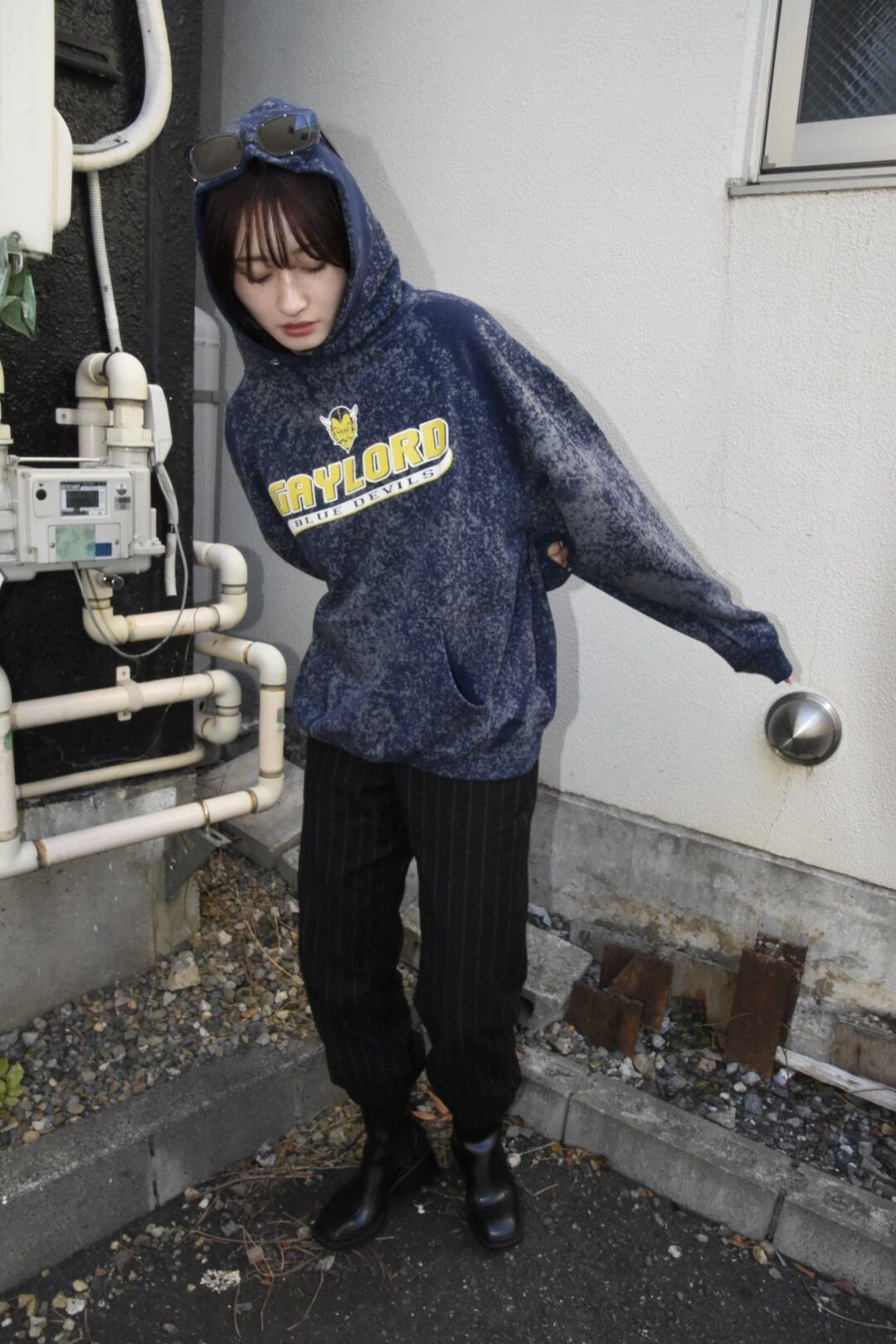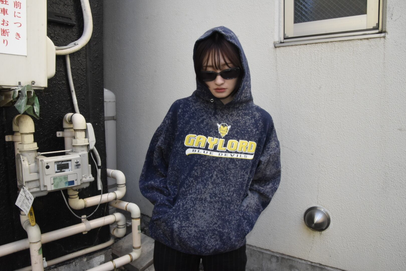 ボディはドット模様ようなタイダイでシンプルな着こなしのアクセントになるのはもちろんですが、ストリートな雰囲気がほしいときにも抜群にハマるアイテムです。